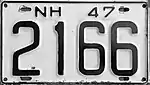 1945 | Embossed black serial on white plate with border line; "NH 45" centered at top | none | 12-345 | 1 to approximately 98-000 | |