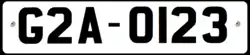 The number plates in this series started with G2A. They had 4 digits. Private vehicle plates were Black on White background. Commercial plates were black on yellow background.