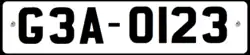 The number plates in this series started with G3A. They had 4 digits. Private vehicle plates were Black on White background. Commercial plates were black on yellow background.