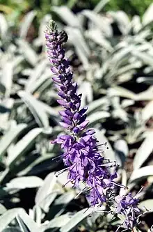Veronica incana, the silver speedwell, is a species of flowering plant in the family Plantaginaceae.[2] It is native to parts of Eastern Europe and Russia, all of Siberia, Mongolia, and northern China, and has been introduced to Czechoslovakia.[1] A number of authorities consider it to be a subspecies of the spiked speedwell Veronica spicata; Veronica spicata subsp. incana.[3] It is a parent of the hybrids Veronica × czemalensis (with V. porphyriana) and Veronica × grisea (with V. longifolia).[4]