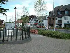 The Memorial Stone is across the road from the Memorial Hall and the Memorial Recreation Ground. Two plaques on the front of the stone are dedicated to the gallant souls who died in both world wars[7]