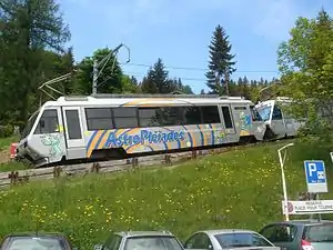 The Chemins de fer électriques Veveysans opened a line between Vevey and Chamby on 1 October 1902.[2] The extension from Blonay to Les Pléiades opened on 8 July 1911.[3] The CEV and three other companies merged to become the Transports Montreux–Vevey–Riviera on 1 January 2001.[4]