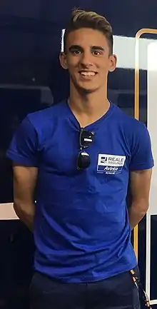 Following the death of fellow Avintia Academy rider Andreas Pérez (who was not related to him)[2] he switched his bike number to No. 77 as a tribute while also replacing Livio Loi in the Moto3 category.[3]