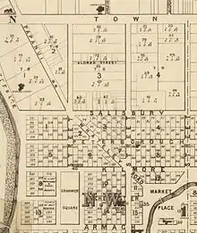 Victoria St runs for roughly 800 metres (0.50 mi) from north-west to south-east towards the centre of Christchurch. It stops at Kilmore and Durham Streets, which form the boundary of Victoria Square. There is a slight deviation in direction at the intersection of Salisbury and Montreal Streets. Originally, the street began at the intersection of Colombo and Armagh Streets and went through what is now Victoria Square, including a crossing of the Avon River on what is now known as the Hamish Hay Bridge.