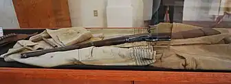 A set of clothing and a rifle, all of which belonged to Ramírez, on display in a museum in Encarnación de Diaz.