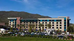 On August 31, 2011, the Viejas tribe announced plans to add a 150-room luxury hotel to the casino.[4] Plans were scaled back slightly resulting in a 5-story hotel with 128 rooms consisting of 99 deluxe rooms and 29 luxury suites. The $36 million project broke ground in early 2012 and the building was topped out in November 2012. Hotel construction was completed in March 2013 with the grand opening celebration held on March 21, 2013. Viejas describes the hotel as "modern amenities, streamlined design and handcrafted, boutique feel".[5] The original hotel includes a business center, fitness center, and resort style pool with VIP cabanas.