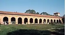 A barchessa, an arcaded loggia containing service areas for the grounds and fields, runs to the east of the villa.[2]