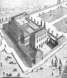 The main nucleus of the villa, with a rectangular plan, was built between the end of the 15th century and the beginning of the XVI at the behest of Gualtiero Bascapè, chancellor of Ludovico il Moro, who had bought the land (then a farm in the open country) from the Ospedale Maggiore.[1] Bescapé lived in the villa, then called 'La Gualtiera', for only two years before his death. After his death, the villa changed hands, belonging among other things to the Rabia family; in the same decades, extension and renovation works are documented (e.g. in 1531). In 1544, the house was sold to Gian Paolo Cicogna, and later became the property of the governor of Milan Ferrante I Gonzaga.[2]