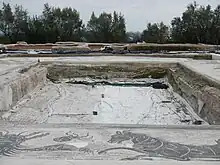 A new series of more meticulous modern excavations was initiated in 1970. More modern scientific work began at the site in 1995, carried out by the Soprintendenza Archeologica di Roma and directed by Professor Gaetano Messineo, in tandem with the Swedish Institute in Rome.[5]