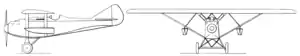 It had a rectangular plan, parasol wing braced from the lower fuselage with pairs of parallel struts on each side which met the wing at about two-thirds span. About halfway up these struts lighter jury struts ran to the edge of the wing centre section, meeting short cabane struts from the upper fuselage. The wing had a wooden structure with fabric covering and carried full span ailerons.[1]