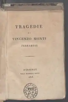 - 1802 – "Mascheroniana"/"In morte di Lorenzo Mascheroni" (poem) and "Caio Gracco" (tragedy)