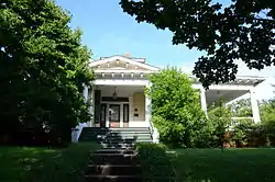 The Vinson House is a historic house at 2123 Broadway in Little Rock, Arkansas. It is a single-story wood-frame structure, with broad Classical Revival styling. It has a hip roof, with projecting gables on several sides, and a modillioned cornice. A porch wraps around three sides of the house, supported by Ionic columns. The main entrance is framed by sidelight and transom windows, with pilasters and an entablature. The house was built in 1905 to a design by noted Arkansas architect Charles L. Thompson.[2]