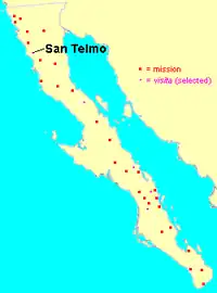 Coordinates30°58′05″N 116°05′31″W / 30.96806°N 116.09194°W / 30.96806; -116.09194 (Visita de San Telmo)