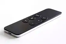 Apple TV remote control, with which users can ask Siri the virtual assistant to find content to watch