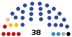 - ↑ 19 deputies elected by single member constituencies, 19 deputies elected in party lists.