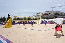 Volleyball, for the 2015 Island Games, took place indoors at the Queen's Hall which is located at Fort Regent, and outside at Weighbridge Place in Saint Helier.[1]