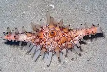 Volva volva is a species of sea snail, a marine gastropod mollusk in the family Ovulidae (false cowries).[1] In Australia the shells are commonly referred to as a shuttle or spindle egg cowry.[2]