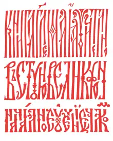 Vyaz (Russian: вязь from вязать, vyazat; Church Slavonic: вѩзати ⰲⱗⰸⰰⱅⰻ, vięzati 'to bind, to tie') is a type of ancient decorative Cyrillic lettering, in which letters are linked into a continuous ornament. It first appeared in South Slavic monuments in the 13th century, and was also used from the end of the 14th to the beginning of the 15th centuries in the East Slavic and Wallachian regions. Under the reign of Ivan the Terrible, Vyaz developed considerably, but was later abandoned.