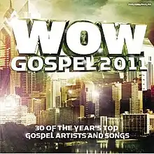 WOW Gospel 2011 is a gospel music compilation album from the award-winning WOW series. Released on February 1, 2011 (which made it the first annual WOW Gospel album in the history of the series not released in January), the double CD album features thirty contemporary gospel hits. The album cover pays tribute to Philadelphia, Pennsylvania. The album debuted straight at number one on the Billboard Gospel Albums chart, and peaked at number 29 on the Billboard 200 in 2011.[3]