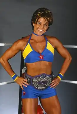 ![]() The inaugural two-time WOW World Championship Terri Gold with the original belt design | |||||||||||