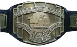 The WWA Light Heavyweight Championship (Campeonato Mundial peso Semi Completo de WWA in Spanish) is a singles professional wrestling championship promoted by World Wrestling Association (WWA) in Mexico since 1987. The official definition of the Light Heavyweight weight class in Mexico is between 92 kg (203 lb) and 97 kg (214 lb), but is not always strictly enforced.[lower-alpha 1][1]