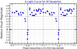A visual band light curve for W Serpentis, adapted from Piirola et al. (2005)[1]