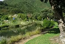 In 2010–2011, a volunteer group of residents was formed as the Friends of Waiwhetū Stream to act as guardians and take action to restore the upper reaches of the stream, with the support of the Greater Wellington Regional Council and Hutt City Council.[48] One of the early tasks undertaken was the removal of the invasive aquatic plant Cape pond weed that had smothered the stream and impeded water flows. Over a period of three years, volunteers removed by hand approximately 300,000 plants from 3.4 kilometres (2.1 mi) of the stream.[34]: 26 In 2023, the Friends of Waiwhetū Stream reported that annual sweeps of the river had shown that there are no longer any Cape pond weed plants present.[4] The group also controls other invasive plants on the banks of the stream such as tradescantia and blackberry, and contributes to surveys of fish and invertebrates in the stream.[4]