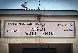 Wali Khan Railway Station (Urdu: ولی خان ریلوے اسٹیشن, Balochi: والی خان ریلوے اسٹیشن ) is located in Pakistan.