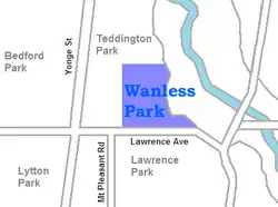 Wanless Park is a neighbourhood and park in North Toronto, Ontario, Canada. It is located just north of Lawrence Avenue, between Bayview Avenue and Ronan Avenue.