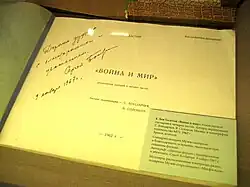In August 1959, King Vidor's American-Italian co-production War and Peace was released in the Soviet Union, attracting 31.4 million viewers and gaining wide acclaim. The impending 150th anniversary of the 1812 French Invasion, as well as the worldwide success of Vidor's adaptation of the Russian national epic – at a time when the USSR and the United States were competing for prestige – motivated the Soviet Minister of Culture Yekaterina Furtseva to begin planning a local picture based on Leo Tolstoy's novel.[7] An open letter which appeared in the Soviet press, signed by many of the country's filmmakers, declared: "It is a matter of honor for the Soviet cinema industry, to produce a picture which will surpass the American-Italian one in its artistic merit and authenticity."[8] According to Der Spiegel, the film was to serve as a "counterstrike" to Vidor.[9]