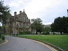 In 1897 the foundation stone of new permanent buildings was laid on the north side of the house. The first block of these buildings was opened on 1 August 1899, and they were completed by 1901.[4] They are built in the neo-Jacobean style of Doulting stone, with Bath stone dressings. Student numbers grew; in 1908 there were 40 and this later rose to 53. In 1913, after the death of Philipps, the constitution of the College was changed and one of the purposes now listed was for the actual training of missionaries. The College closed during the First World War but then re-opened and flourished. In 1927, a large extension to the south, designed by Sir Charles Nicholson, added a chapel and library.[4] The College again closed for the duration of the Second World War.