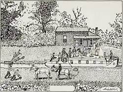 A sketch of a canalboat by Herbert Fall from circa 1840, about the time the canal operated