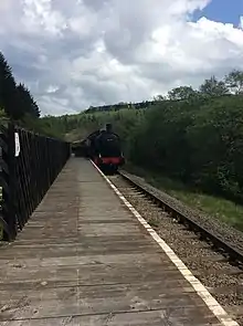 One of Warrenby Halt's platforms survives at Newton Dale Halt on the North Yorkshire Moors Railway.[5]