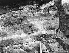 ![]() Outcrop showing cryptozoa layers at Bakers Summit, Bedford County | |