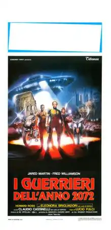 Warriors of the Year 2072 (Italian: I Guerrieri dell'anno 2072, lit. The warriors of the year 2072) is a 1984 Italian science fiction film directed by Lucio Fulci. The film is set in the 21st century, where Romans have found a new way to handle criminals: by having them fight each other like gladiators on motorcycles on national television. The film was based on a trend of Italian cinema to develop stories of futuristic barbarians after the popularity of the films Mad Max and Escape from New York.