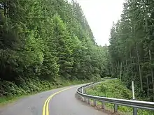 SR 165 begins at the western boundary of Mount Rainier National Park on Mowich Lake Road, which continues east for 6 miles (9.7 km) to a campground at Mowich Lake on the northwestern flank of Mount Rainier.[2] Mowich Lake Road is open seasonally from July to October, remaining closed to vehicular traffic during the winter and spring due to weather conditions.[3][4] The southernmost section of the highway is an unpaved gravel road—the only one to be included in Washington's state highway system.[5]