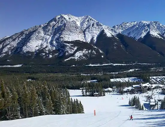 Wasootch Peak is a 2,352-metre (7,717-foot) mountain summit located in the Fisher Range of Kananaskis Country in the Canadian Rockies of Alberta, Canada. The peak is situated on the northern end of the ridge that separates Wasootch Creek from Porcupine creek. Wasootch Peak's nearest higher peak is Old Baldy, 1.54 km (0.96 mi) to the southeast.[1] The peak may be seen from Highway 40, and is prominently featured from the ski slopes at Nakiska. Wasootch is from the Stoney language word wazi, which translated means unique.[3]