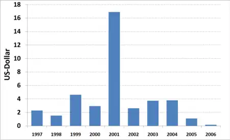 - ↑ All figures in constant US Dollars of 2006.