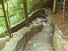 Jacob's Ladder, near the upper entrance to the park, has 180 stone steps, part of the 832 total on the trails