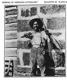 Around 1907 he worked with anthropologist John R. Swanton who collected information about Natchez religion.[3] Swanton commented that Sam, having lived among the Cherokee and Creek his whole life and being fluent in both languages, had absorbed so much of their oral tradition that it was difficult to know the extent to which his stories reflected original Natchez tradition. For some of passages in the narratives that had sexual content, Swanton only provided a translation into Latin.[4] In the 1930s he worked with linguist Mary Haas who collected grammatical information and texts. In 1931, anthropologist Victor Riste made several wax cylinder recordings of Watt Sam speaking the Natchez language, which were rediscovered at the University of Chicago in the 1970s by Archie Sam and linguist Charles Van Tuyl.[5][6] One of the cylinders is now at the Voice Library at the University of Michigan.[6]