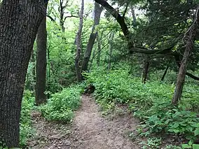 There are 7 miles (11 km) of foot trails and 8 miles (13 km) of equestrian trails winding along ridges down into gorges and valleys. The Sunset Ridge Interpretive Trail provides visitors a chance to learn about many of the park's important plants and trees, as well as enjoy the views. Waubonsie State Park is a site on the Lewis and Clark National Historic Trail.