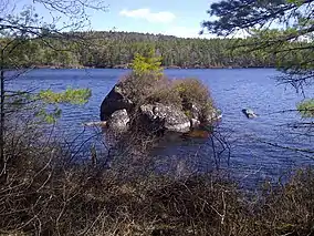 Some of the hills found in the wilderness area reach over 100 meters tall, and Jack Pine (an uncommon tree in Nova Scotia) grows in abundance on the hills. The wilderness area features pockets of old-growth Red Pine, White Pine, and hemlock.[2] Due to the hilly nature of the terrain, much of the old-growth softwood forest is well-drained. The valleys of the wilderness area, which are much wetter, feature Black Spruce and Balsam Fir, and the occasional Red Maple or White Birch grows amongst the softwoods. Part of the watershed that feeds Lake Major, the main water supply for the City of Dartmouth is contained within this wilderness area. The southern part of the wilderness area, including West Lake and Granite Lake and the Salmon River can be accessed via the Crowbar Lake Hiking Trail.[3] Most of the remainder of the wilderness area may be accessed by canoeing and portaging, with starting points on Lake Major, Aerotech Drive, or Salmon River Road.[4]