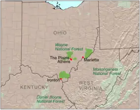 ![]() Location of Wayne National Forest | |