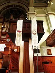 The exterior of church is notable for its magnificent neoclassical portico, complete with a colonnade of Corinthian columns in the style of an ancient Graecian temple. This neoclassical architecture was much favoured by United Presbyterian Church, in contrast to the Gothic Revival favoured by most other churches in the Victorian era.[1]