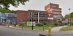 New offices were built on the site of the former parish council's offices at the corner of Bridge Road and The Campus. The new building was formally opened in January 1937.[22][23] This building served as the headquarters of Welwyn Garden City Urban District Council until its abolition in 1974. Between 20 May 1948 and 31 March 1966 the development of the town was also administered by the Welwyn Garden City Development Corporation, set up under the New Towns Act 1946.[24]