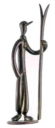 Cigarette stubber or seal in the form of a skier, designed by Karl Hagenauer, about 1930