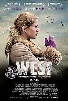 West (German: Westen) is a 2013 German drama film directed by Christian Schwochow and written by his mother Heide Schwochow. The film is based on the German novel Lagerfeuer by Julia Franck. Westen had its premiere at the 25th Montreal World Film Festival[1] and was released in the United States on November 7, 2014.[2]
