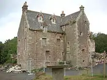 Crosbie Castle (also known as Crosbie Towers) lies to the north east on the outskirts of West Kilbride. It was largely rebuilt from a tower demolished in the 17th century which was the home of Sir Ranald Craufurd (uncle of William Wallace) in the 13th century,[15] and it is said that Wallace himself spent some time at Crosbie.[15] Currently the castle lies at the centre of a caravan park also called Crosbie Towers. Having lain empty for a number of years due to internal fire damage, part of the building was demolished in early 2007 after heavy storms damaged the external walls of the castle.[16] Although the building is a Category-B listed building, permission was not sought before demolition.[16]