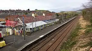 The station was opened on 1 May 1878 by the Glasgow and South Western Railway as part of the extension of the former Ardrossan Railway to Largs.[2] The present station building was designed in 1900 by the noted architect James Miller.[4] A camping coach was positioned here by the Scottish Region from 1954 to 1957, two coaches were here in 1964 and three from 1965 to 1967.[5]