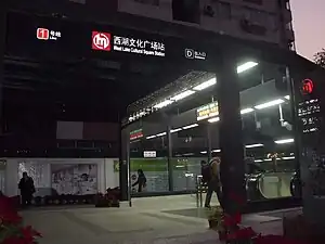 West Lake Cultural Square (Chinese: 西湖文化广场) is an interchange station between Line 1, Line 3 and Line 19 of Hangzhou Metro in China.[3][4] It was opened in November 2012, together with the rest of the stations on Line 1. It is located at Xihuwenhua Square in Gongshu District of Hangzhou. The station is designed to accommodate a paired cross-platform interchange with Line 3.